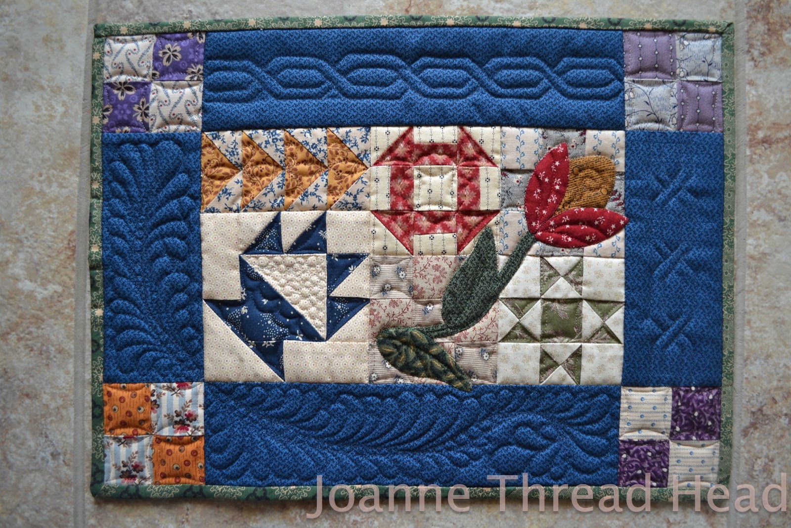 If you have never machine free motion quilted, now is the time to try - this is a small project and as a sampler quilt it is the time to try new things!