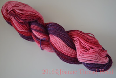 This week I also finished spinning some yarn - some Polwarth wool that I dyed and spun as a gradient from light pink to dark purple.