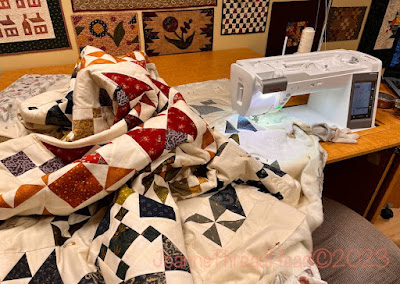 It was lots of fun to try out, but I can't imagine quilting a large quilt this way (it isn't as fast for me as free motion quilting, but maybe I just need more practice).
