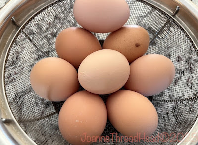 It is a little runner for an old washstand.Of course I have to have a pet photo - that hen had lots to say!